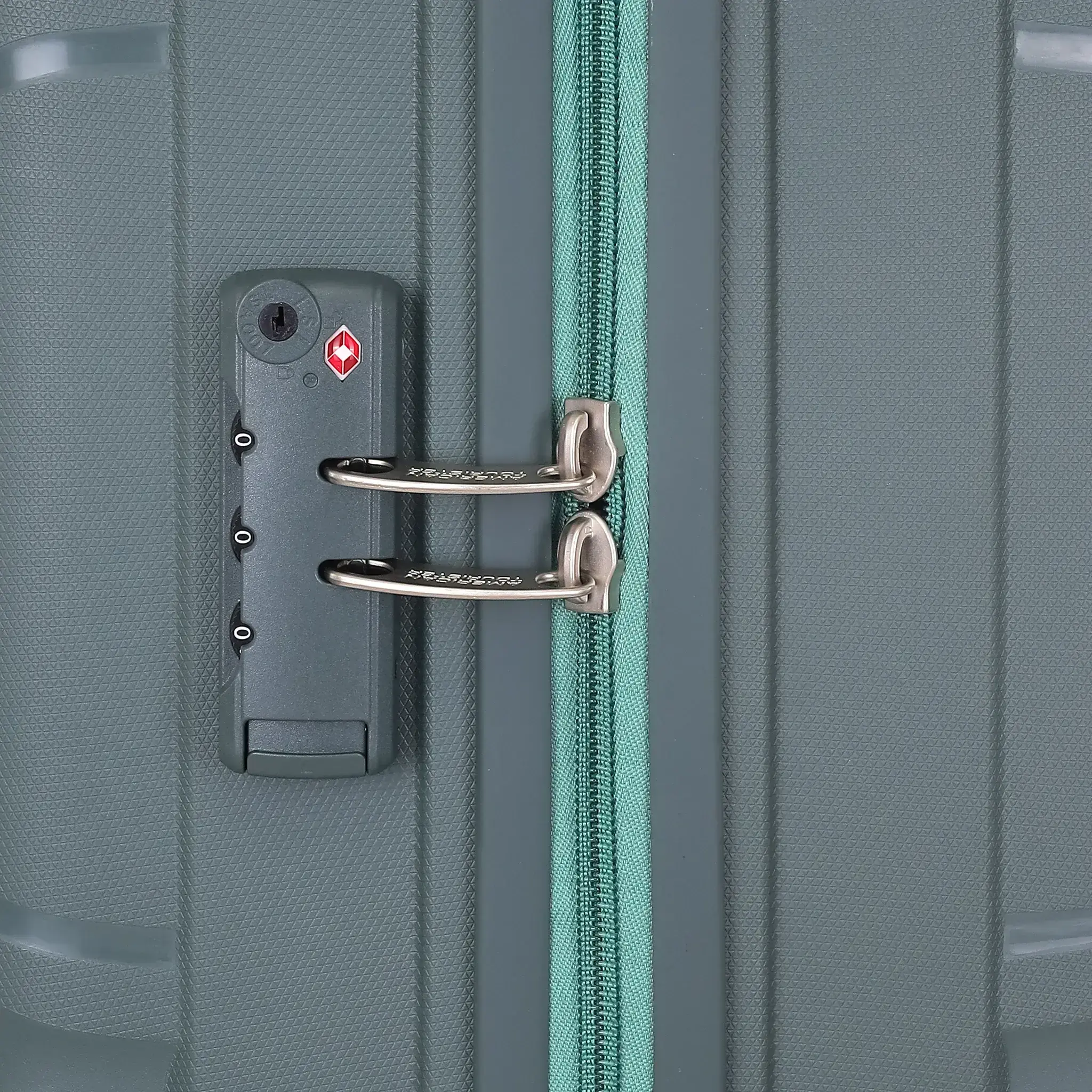 Available in three appeasing colours - Spring Green, Dark Slate, Formula Red & colour matched components, this trolley has an understated style that sets you apart. The luggage space features Pack Max Interior with shoe bag as well as dual packing straps for convenient packing. Designed for a comfortable hold and move, the flexi plus handle gives you a better & sturdier grip while the double wheels provides easy manoeuvrability. This exquisite looking hard case trolley comes with a TSA lock for extra security and 3 years international warranty.