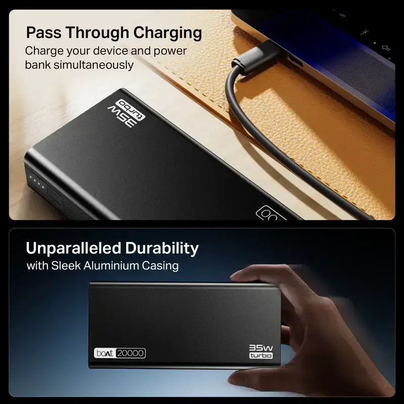 Powerbank with 35W Fast Charging, 20,000mAh, 12-Layer Smart IC Protection, Aluminium Casing - Crafted with a high-grade aluminium enclosure, the PB435 Turbo offers durability and a refined finish. Resistant to everyday wear and designed for longevity, it maintains its premium look even with rough use.