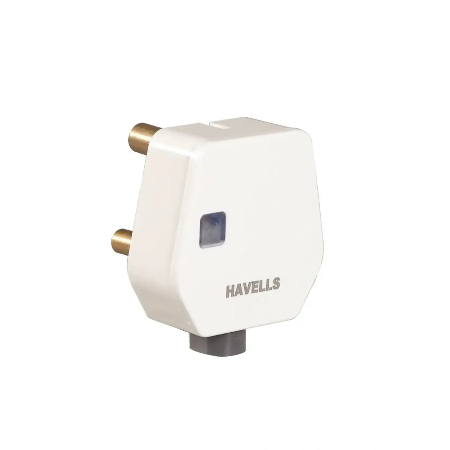 Havells 16A 3-Pin Flat Plug Top with Indicator | White (Model: AHLGWXW163-Pk1)