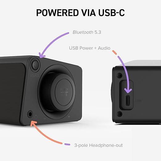 Designed to fit perfectly under a desktop monitor, the low-profile soundbar is powered by USB for a clutter-free desktop setup