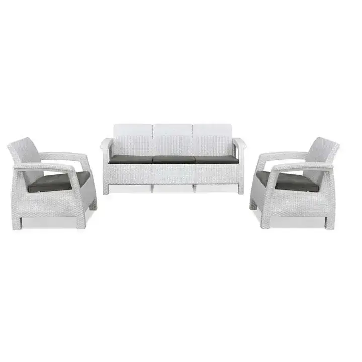 Premium plastic for exceptional durability, ensuring it withstands daily wear and tear. Soft, fabric-covered cushions offer cosy and comfortable seating, perfect for extended lounging sessions.