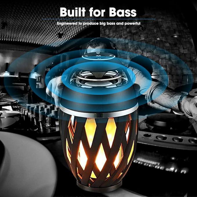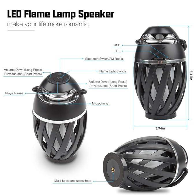FANTASTIC FLAME ATMOSPHERE OUTDOOR SPEAKER: Upgrade flame speaker has 96 LEDs, which shows more real torch light, others only with 60 LEDS. All 96 LEDs flicker together with warm yellow lights, forming a stunning flame, mimic extremely realistic & natural dancing flames, combined with great audio function, to create a romantic atmosphere for you.
