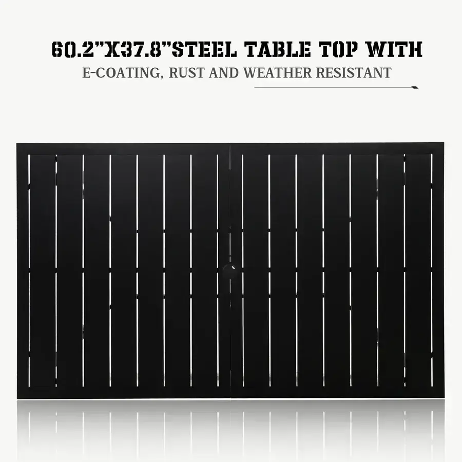 DIMENSION: L60" x W37" x H28", suits for 6 people; L37" x W37" x H28", suits for 4 people;1.57" diameter of umbrella hole in the center fits most umbrellas which could protect against damage from the bright sun.