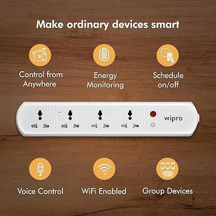 Make your ordinary devices smart by connecting them through Wipro Smart extension. What's more, you can easily monitor the energy consumption of all devices connected to this smart extension. With Wipro Smart technology, your ordinary devices become part of your connected world, providing convenience and energy awareness in one smart package. Elevate your smart home experience with the Wipro Smart Extension Board today.